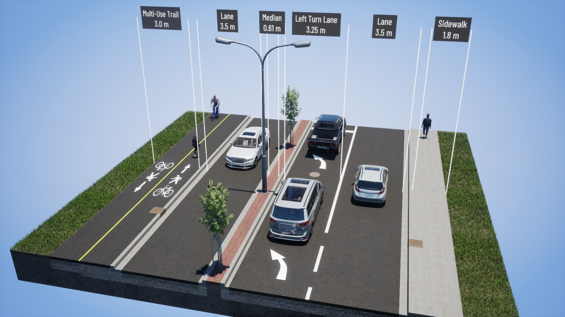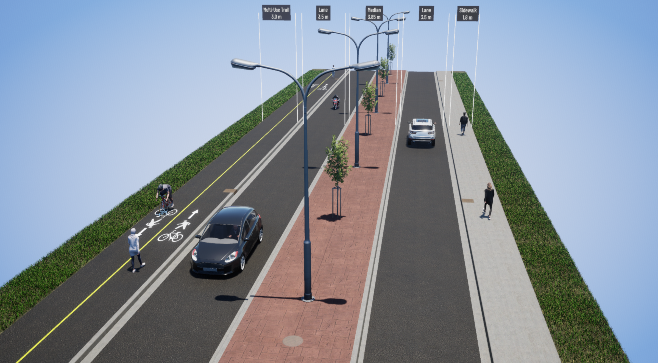 Road reconstruction, including active transportation and pedestrian infrastructure, new driving lane configurations and new pedestrian crossovers